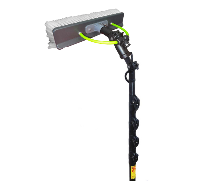Lightweight yet durable 25FT carbon fiber telescopic pole by IPC Eagle, designed for high-reach pure water cleaning. Includes a 14" Slide Brush and a plastic Gooseneck- ideal for use with IPC Hydro Cart Systems.