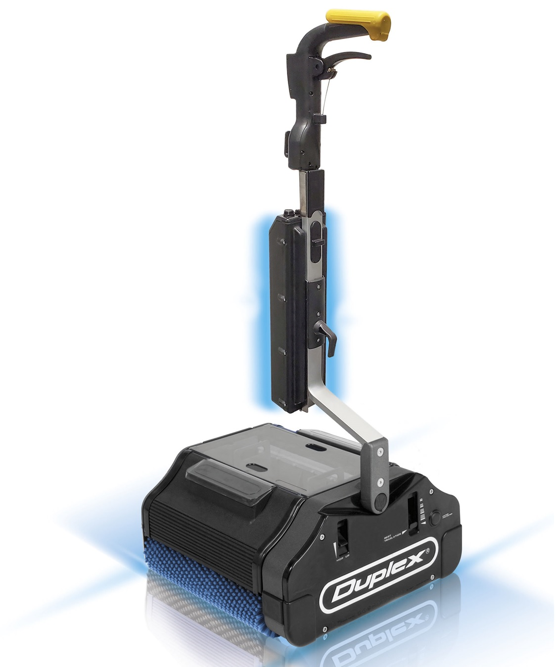 Dual-direction: the original design and versatility of the Duplex allows bi-directional cleaning. With the brushes working to the edge on one side, a fluid movement to change handle position allows cleaning up to every edge without having to lift or turn the machine.