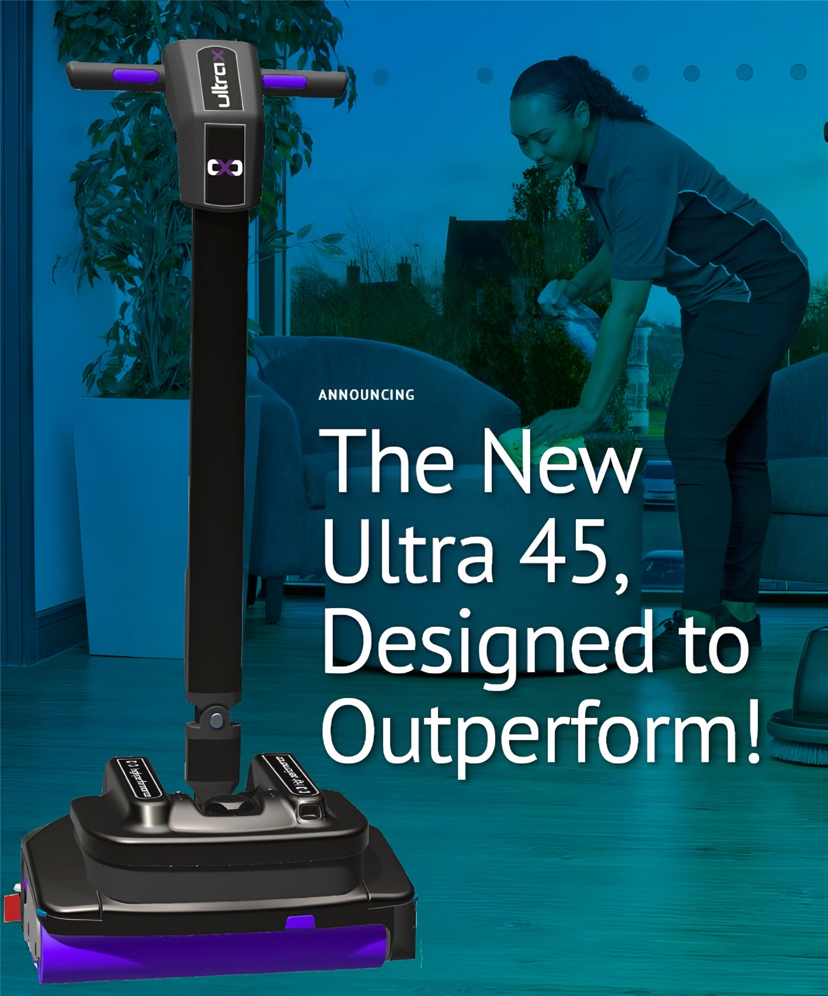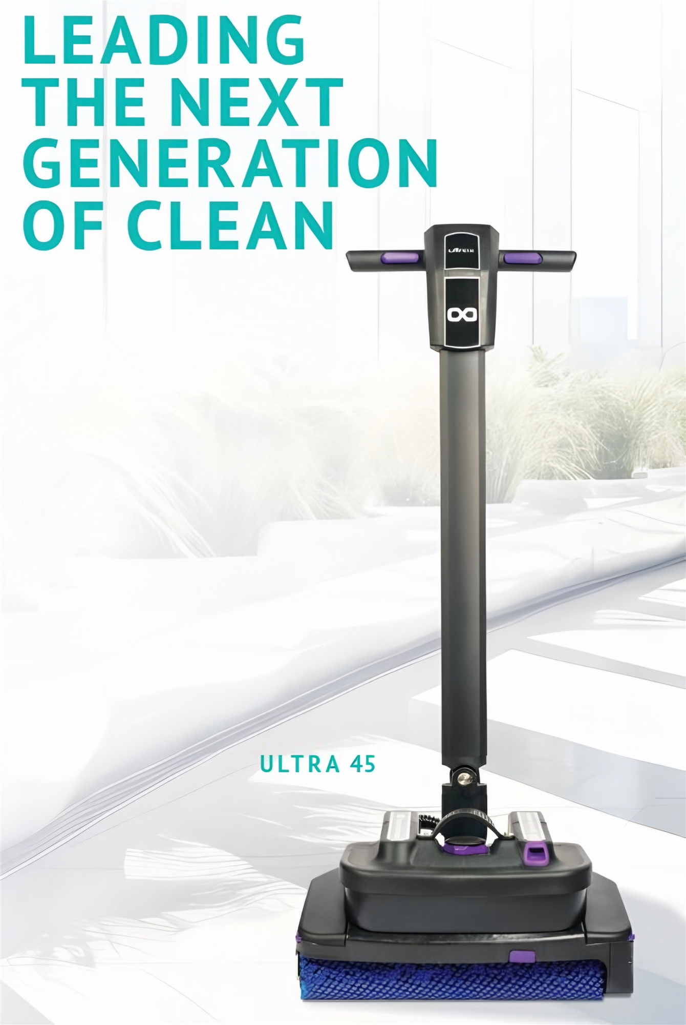 The Ultra 45 is a cordless multi-floor cleaning system designed for commercial environments where efficiency, mobility, and simplicity matter. With dual cylindrical brushes, a long-lasting battery system, and user-serviceable components, it delivers top-tier cleaning performance with low cost of ownership.