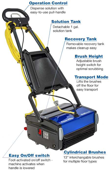 - wide 13” cleaning path covers up to 5,500 square feet per hour
