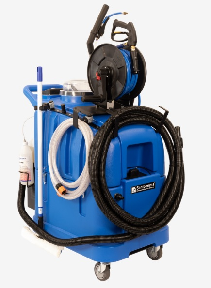 the injection-extraction system: a chemical solution is sprayed on the floor and