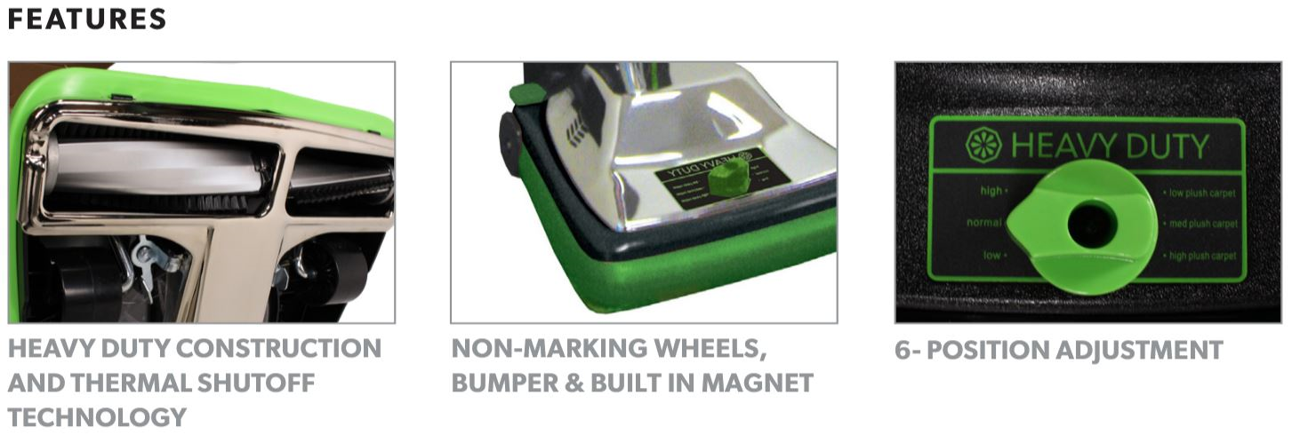 Designed to withstand tough jobs, this unit includes thermal shutoff technology, heavy-duty metal components, and an adjustable brush system to perform consistently across different flooring types.