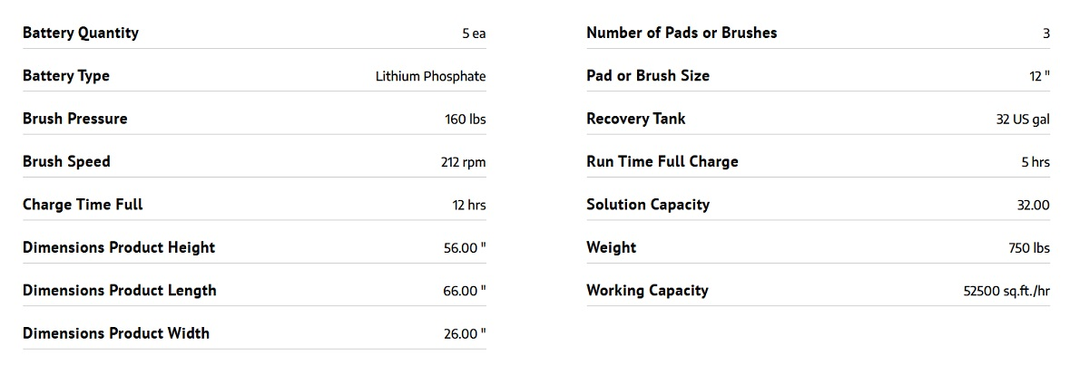 850/150T is easy to use and maintain. With three adjustable scrubbing widths