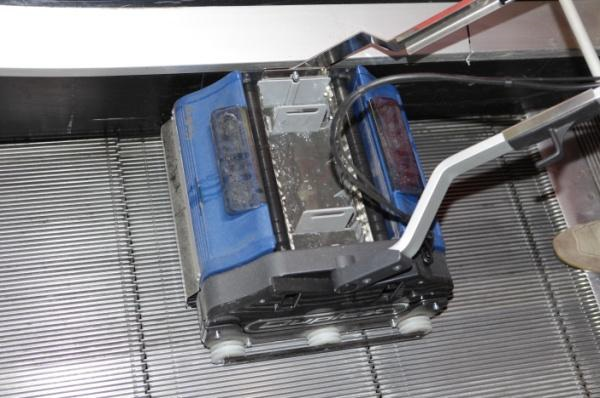 The patented guide rail system perfectly aligns into the treads of the escalator or moving walkers thus ensuring the safe operation of the machine whilst in motion.
