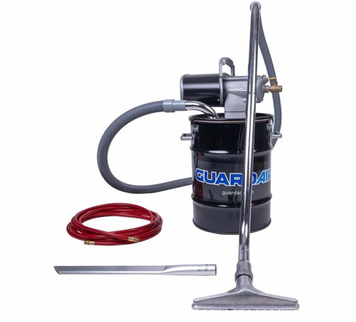 Powered by compressed air, with no rotating parts, no motors to spark or burnout, and no electric cords, PowerQUAD™ Vacuums generate superior vacuum suction while delivering substantial operating cost savings. Kit includes vacuum hose, air supply hose and accessories