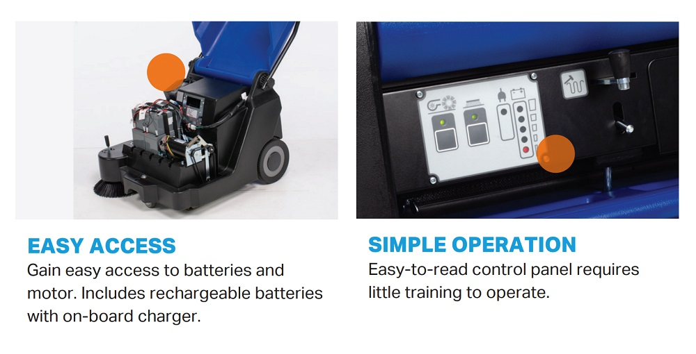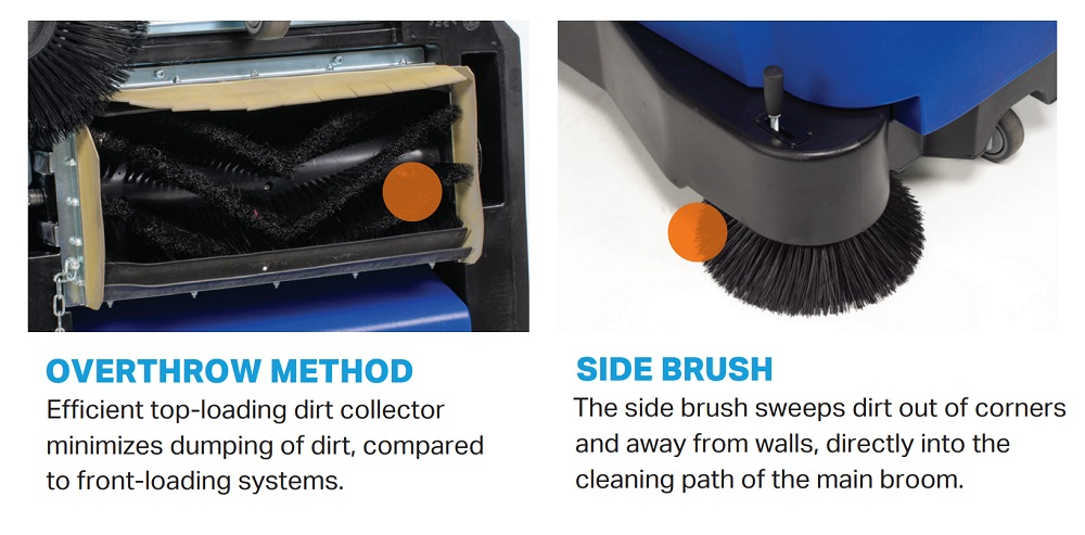 Maximize sweeping speed up to 26,000 sq. ft. per hour—more than two-and-a-half times faster than wide-area vacuums and ten times faster than a manual broom!