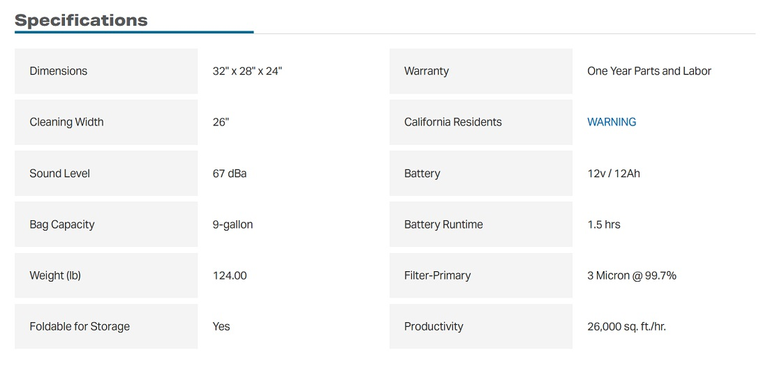 WIDE AREA VACUUM CLEANS UP TO 26,000 SQUARE FEET PER HOUR!