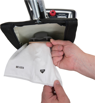 Tool-free brushroll and belt replacement. Dual-zipper pull for quick 6.1 qt. bag replacement.